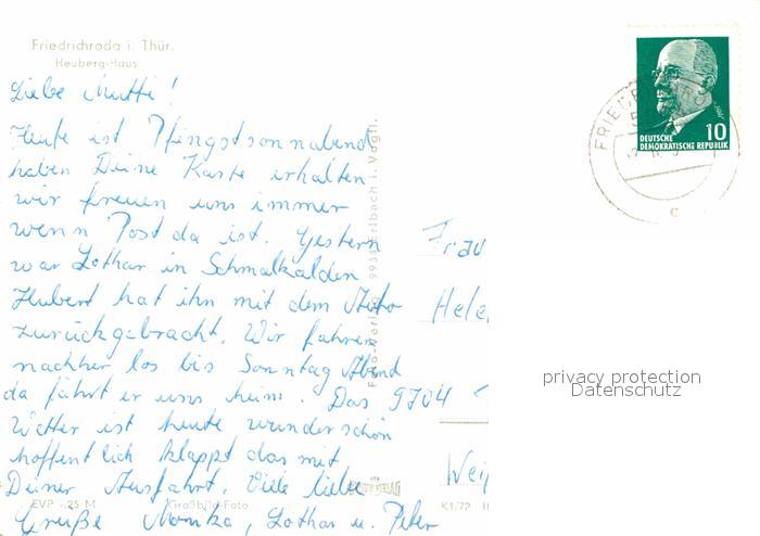 72730329 alte Postkarte Friedrichsroda Heuberg-Haus postalisch gelaufen Erhaltung siehe scans [LiesaD40] KatCode: 11110016067029