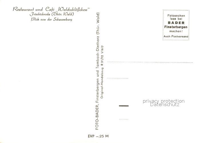 73281174 Friedrichsroda Restaurant Cafe Waldschloesschen Blick von der Schauenburg postalisch nicht gelaufen Erhaltung siehe scans [LiesaD40] KatCode: 11110016067029