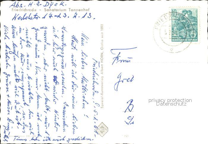 72280684 alte Postkarte Friedrichsroda Sanatorium Tannenhof postalisch gelaufen Erhaltung siehe scans KatCode: 11110016067029