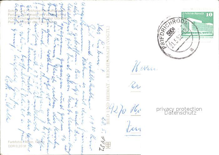 72424056 alte Postkarte Friedrichsroda Schloss Parkhotel Reinhardsbrunn Puschkinpark postalisch gelaufen Erhaltung siehe scans KatCode: 11110016067029