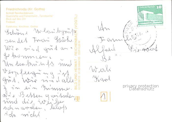 72263523 alte Postkarte Friedrichsroda Schloss Reinhardsbrunn Restaurant Ferienheim Tanzbuche postalisch gelaufen Erhaltung siehe scans KatCode: 11110016067029