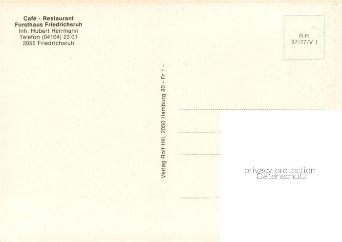 73793600 Friedrichsruh Aumuehle Cafe Restaurant Forsthaus Friedrichsruh postalisch nicht gelaufen Erhaltung siehe scans [FriedD77] KatCode: 11110001053003