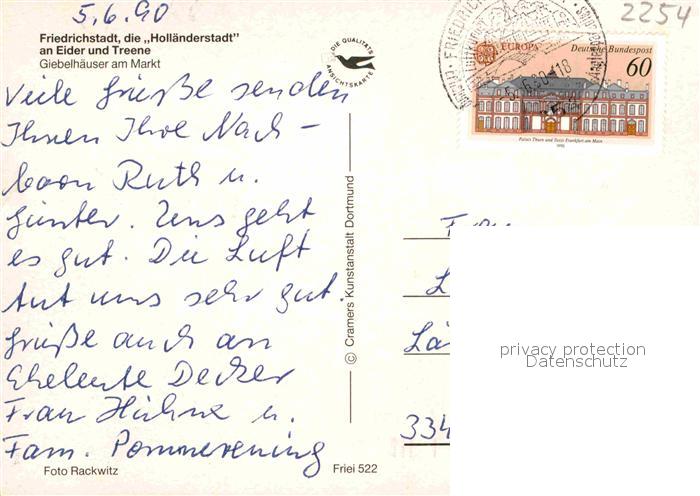 72912223 alte Postkarte Friedrichstadt Eider an Eider und Treene Giebelhaeuser am Markt postalisch gelaufen Erhaltung siehe scans [LiesaD40] KatCode: 11110001054033