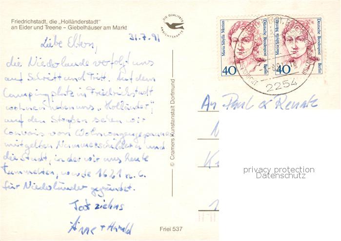 73865479 alte Postkarte Friedrichstadt Eider die Hollaenderstadt an Eider und Treene Giebelhaeuser am Markt postalisch gelaufen Erhaltung siehe scans [FriedD77] KatCode: 11110001054033
