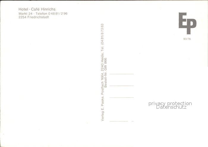 72468176 Friedrichstadt Eider Hotel Cafe Hinrichs Kirche Bootfahren postalisch nicht gelaufen Erhaltung siehe scans KatCode: 11110001054033