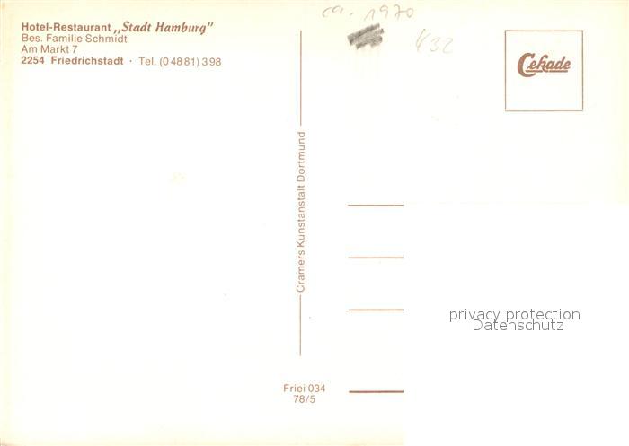 73570115 Friedrichstadt Eider Hotel Restaurant Stadt Hamburg postalisch nicht gelaufen Erhaltung siehe scans [FriedD77] KatCode: 11110001054033