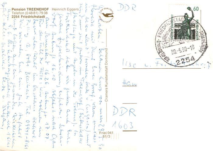 73905218 alte Postkarte Friedrichstadt Eider Pension Treenhof Gastraum Seepartie postalisch gelaufen Erhaltung siehe scans [FriedD77] KatCode: 11110001054033