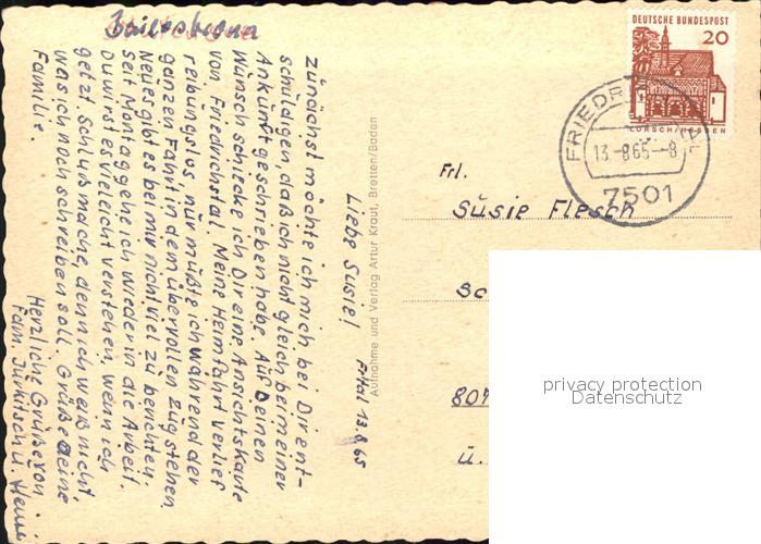 41612826 alte Postkarte Friedrichstal Baiersbronn Kirchen Rathaus Schulhaus Monument postalisch gelaufen Erhaltung siehe scans KatCode: 11110008237004