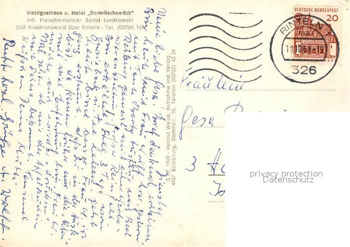 73121381 alte Postkarte Friedrichswald Rinteln Gaststaette Pension Dornroeschen Eck postalisch gelaufen Erhaltung siehe scans [KathaD81] KatCode: 11110003257031