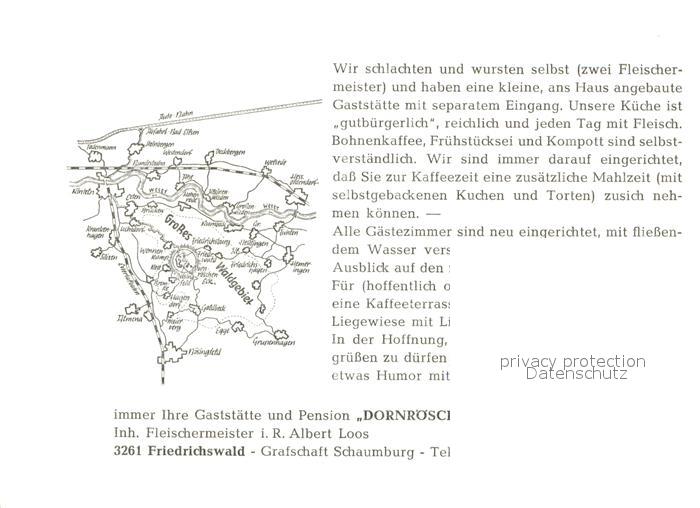 73645542 Friedrichswald Rinteln Gaststaette Pension Dornroeschen Gastraeume Zimmer postalisch nicht gelaufen Werbekarte (keine Postkarte) Erhaltung siehe scans [WerneD78] KatCode: 11110003257031