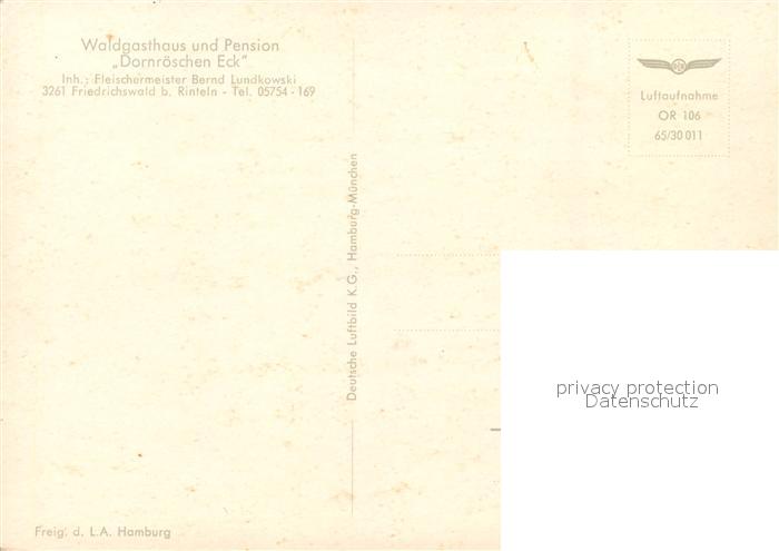 73165014 Friedrichswald Rinteln Waldgasthaus Pension Dornroeschen Eck Fliegeraufnahme postalisch nicht gelaufen Erhaltung siehe scans [WerneD78] KatCode: 11110003257031