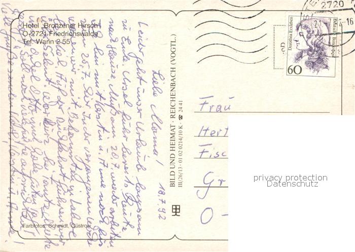 73653306 alte Postkarte Friedrichswalde Blankenberg Hotel Bronzener Hirsch Strandpartien postalisch gelaufen Erhaltung siehe scans [WerneD78] KatCode: 11110013060004