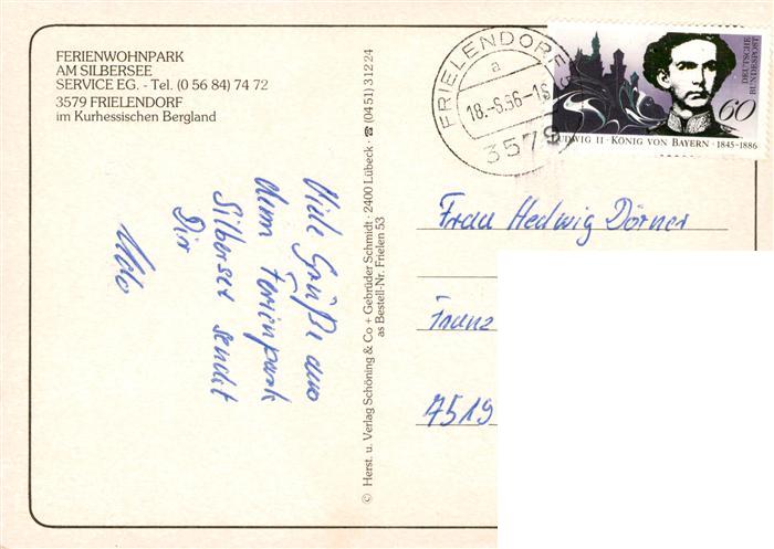 73935289 alte Postkarte Frielendorf Feriendorf Silbersee Pferdewagen Spielplatz Seepartie Tennisplatz postalisch gelaufen Erhaltung siehe scans [FriedD77] KatCode: 11110006634004