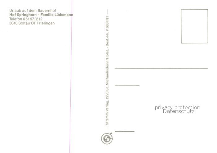 73725055 Frielingen Soltau Urlaub auf dem Bauernhof Hof Springhorn Ponys Wappen postalisch nicht gelaufen Erhaltung siehe scans [FriedD77] KatCode: 11110003358021
