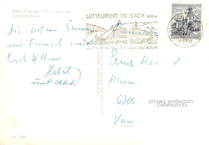 73856039 alte Postkarte Friesach Kaernten Stadtpanorama Kirche Stadtplatz Burg postalisch gelaufen Erhaltung siehe scans [FriedD77] KatCode: 11390213020505