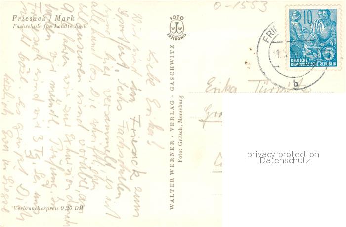 43350396 alte Postkarte Friesack Fachschule fuer Landtechnik postalisch gelaufen Erhaltung siehe scans [FriedD77] KatCode: 11110012063088