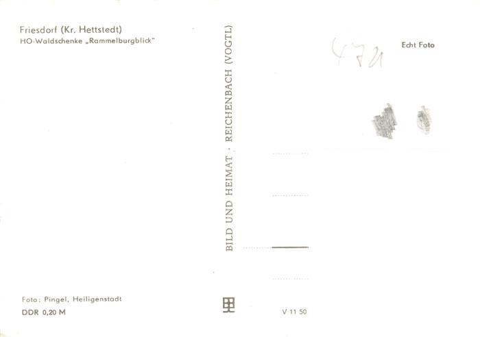 73892165 Friesdorf Hettstedt Wippra HO Waldschenke Rammelburgblick postalisch nicht gelaufen Erhaltung siehe scans [FriedD77] KatCode: 11110015087160