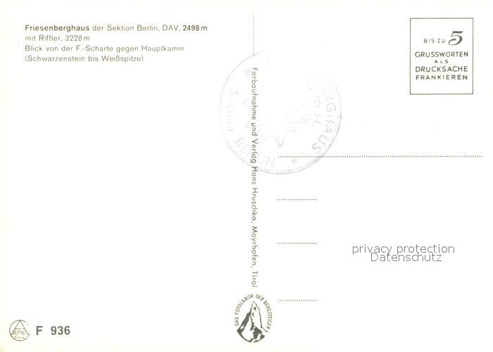 73076822 Friesenberghaus Alpenpanorama Riffler postalisch nicht gelaufen Erhaltung siehe scans [KathaD81] KatCode: 11390