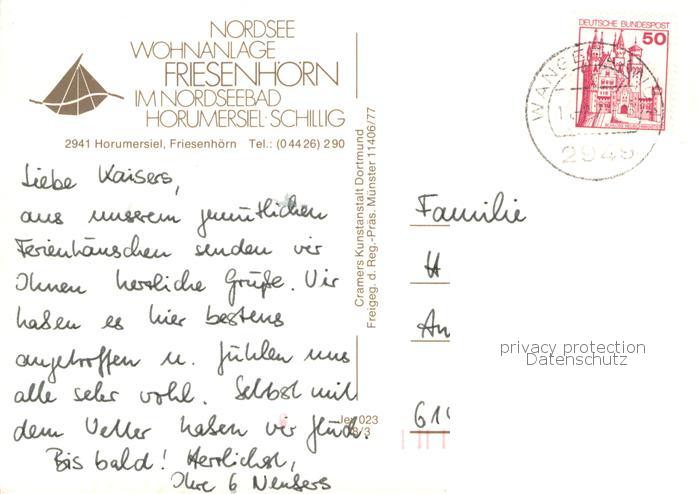 73766300 alte Postkarte Friesenhoern Fliegeraufnahme Wohnanlage postalisch gelaufen Erhaltung siehe scans [LiesaD40] KatCode: 11110003455020