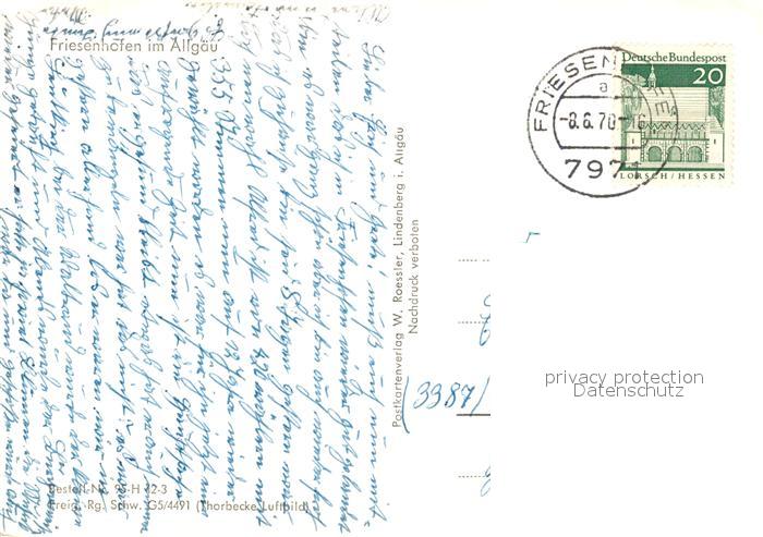 73142068 alte Postkarte Friesenhofen Allgaeu Fliegeraufnahme postalisch gelaufen Erhaltung siehe scans [FriedD77] KatCode: 11110008436055