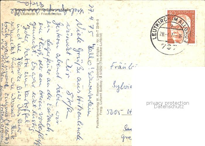 72479837 alte Postkarte Friesenhofen Allgaeu Schullandheim Hitzelinde postalisch gelaufen Erhaltung siehe scans KatCode: 11110008436055