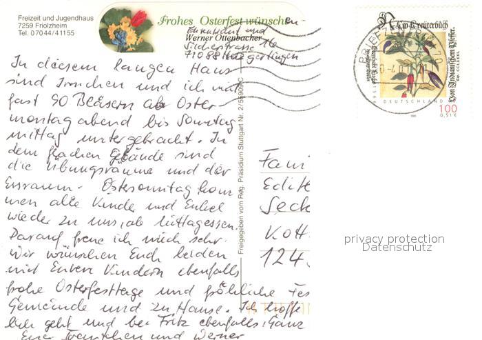 73663711 alte Postkarte Friolzheim Fliegeraufnahme Freizeit- und Jugendheim postalisch gelaufen Erhaltung siehe scans [LiesaD40] KatCode: 11110008236019