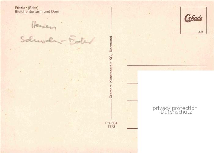 72885660 Fritzlar Bleichentorturm und Dom postalisch nicht gelaufen Erhaltung siehe scans [FriedD77] KatCode: 11110006634005