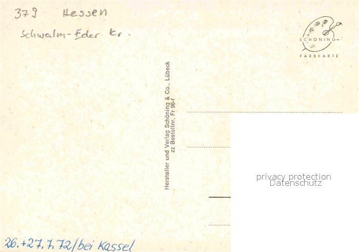 72885657 Fritzlar Brunnen Fachwerk Kirche Freibad Turm Partie am Fluss postalisch nicht gelaufen Erhaltung siehe scans [FriedD77] KatCode: 11110006634005