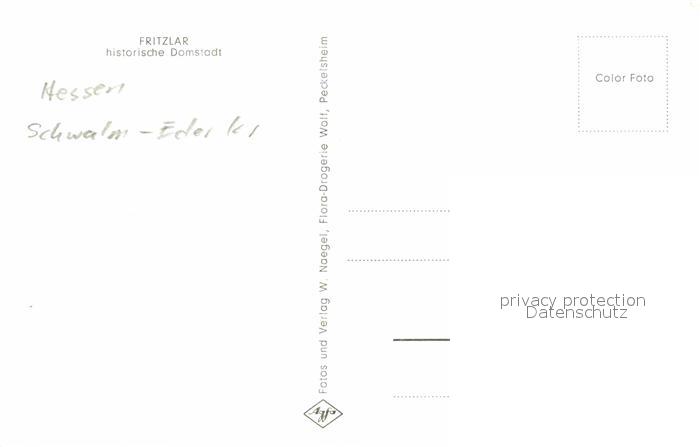 72885046 Fritzlar Dom Ursulinenkloster Historisches Rathaus Allee Stadtmauer Wehrtuerme Marktplatz Rolandsbrunnen postalisch nicht gelaufen Erhaltung siehe scans [FriedD77] KatCode: 11110006634005