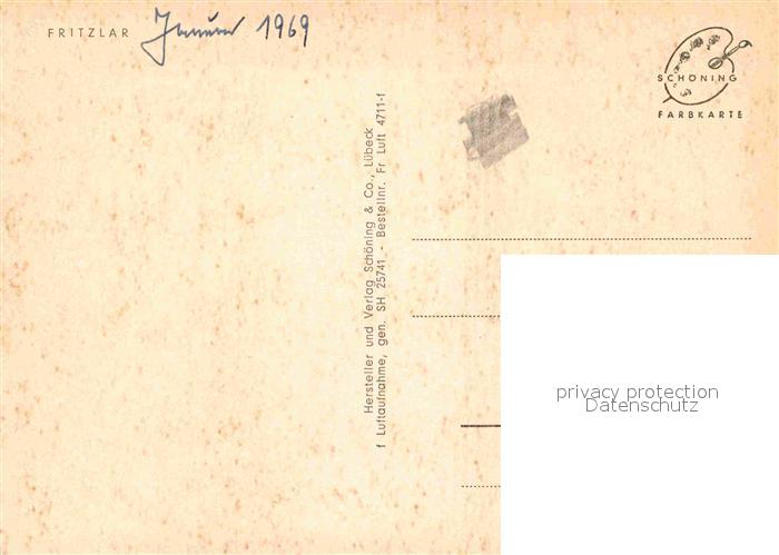 72761036 Fritzlar Fliegeraufnahme mit Kirche postalisch nicht gelaufen Erhaltung siehe scans [LiesaD40] KatCode: 11110006634005