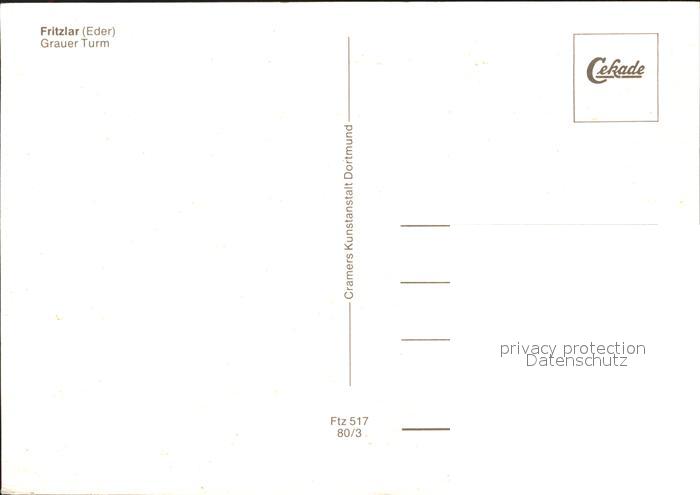 72305912 Fritzlar Grauer Turm postalisch nicht gelaufen Erhaltung siehe scans KatCode: 11110006634005