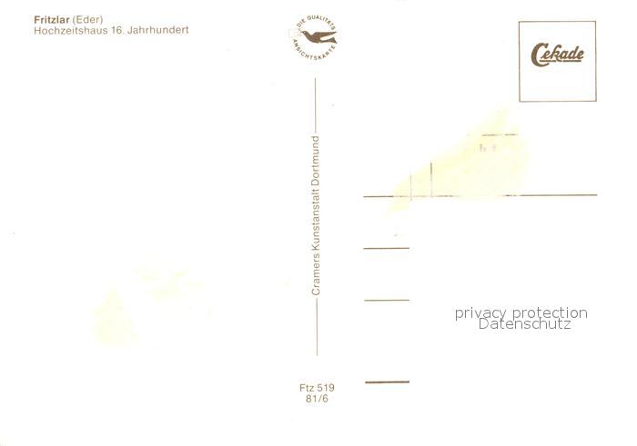 73201588 Fritzlar Hochzeitshaus 16. Jahrhundert postalisch nicht gelaufen Erhaltung siehe scans [KathaD81] KatCode: 11110006634005