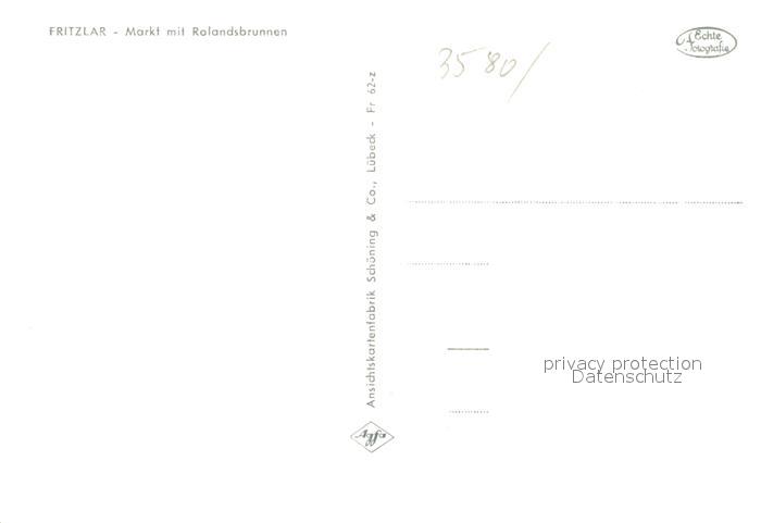73606071 Fritzlar Markt Rolandsbrunnen postalisch nicht gelaufen Erhaltung siehe scans [KathaD81] KatCode: 11110006634005