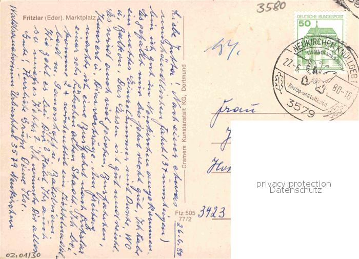 72912365 alte Postkarte Fritzlar Marktplatz Fachwerkhaeuser Altstadt postalisch gelaufen Erhaltung siehe scans [FriedD77] KatCode: 11110006634005