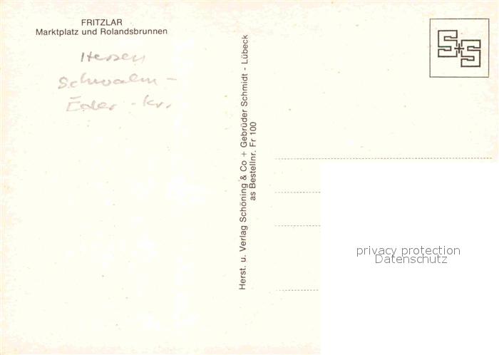 72889809 Fritzlar Marktplatz Rolandsbrunnen Fachwerkhaeuser postalisch nicht gelaufen Erhaltung siehe scans [FriedD77] KatCode: 11110006634005