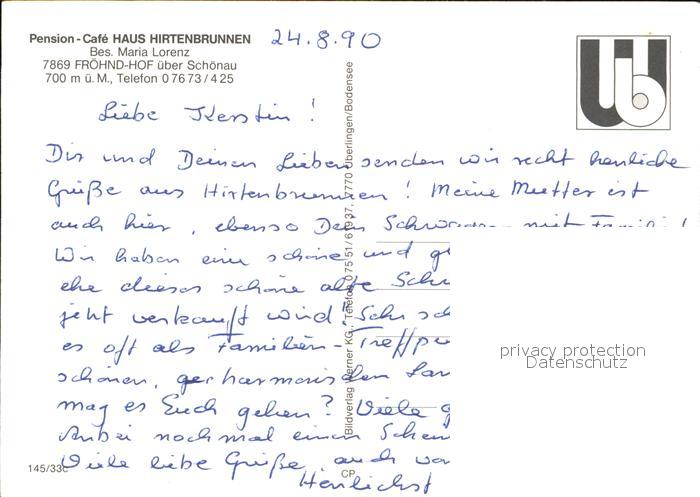 72590308 Froehnd Schwarzwald Pension Cafe Haus Hirtenbrunnen postalisch nicht gelaufen Erhaltung siehe scans [AntonD74] KatCode: 11110008336025