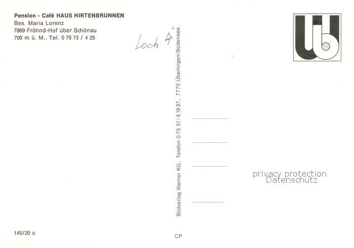 72959920 Froehnd Schwarzwald Pension Cafe Haus Hirtenbrunnen postalisch nicht gelaufen Erhaltung siehe scans [WerneD78] KatCode: 11110008336025