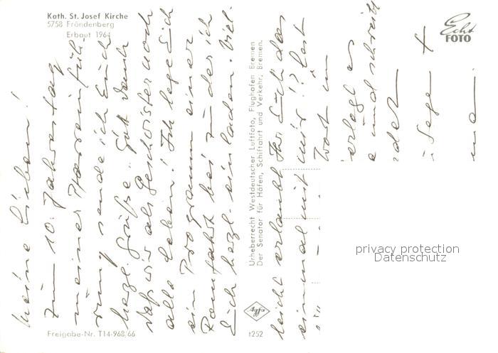 73541094 Froendenberg Ruhr Kath St Josef Kirche postalisch nicht gelaufen Erhaltung siehe scans [WerneD78] KatCode: 11110005978012