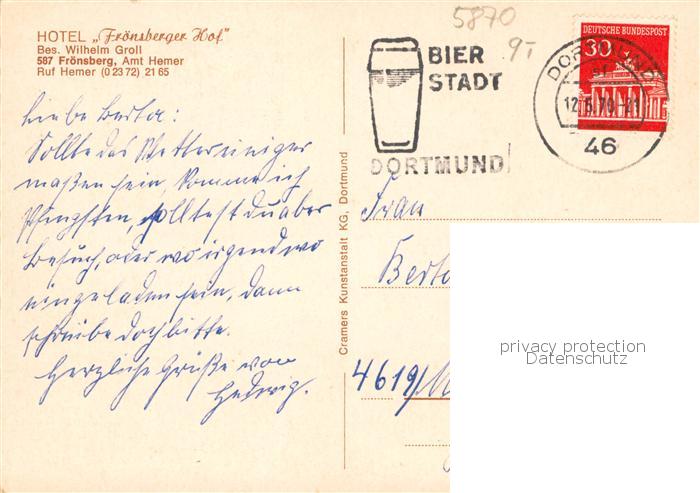 73867390 alte Postkarte Froensberg Hotel Froensberger Hof Restaurant postalisch gelaufen Erhaltung siehe scans [FriedD77] KatCode: 11110005962016