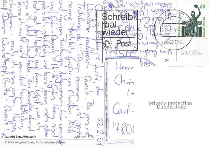 74051592 alte Postkarte Froesche Lurchi Laubfrosch postalisch gelaufen Erhaltung siehe scans [SanaeD93] KatCode: 22540000001100