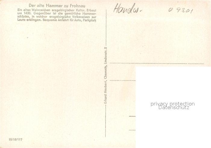 73121620 Frohnau Annaberg Alte Hammer postalisch nicht gelaufen Erhaltung siehe scans [KathaD81] KatCode: 11110014171010