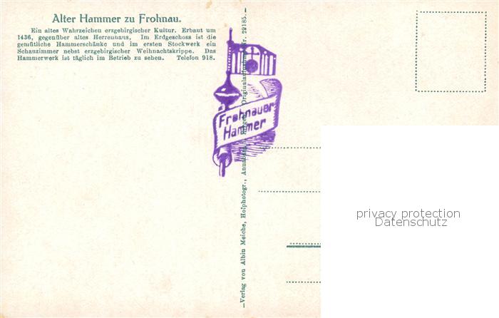 73816573 Frohnau Annaberg Alter Hammer mit dem Hammerwerk postalisch nicht gelaufen Erhaltung siehe scans [FriedD77] KatCode: 11110014171010