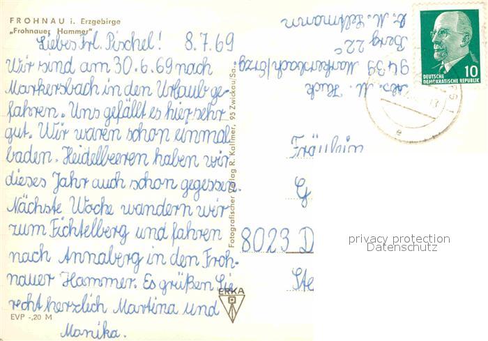 72636063 alte Postkarte Frohnau Annaberg Frohnauer Hammer Herrenhaus Historisches Hammerwerk postalisch gelaufen Erhaltung siehe scans [FriedD77] KatCode: 11110014171010