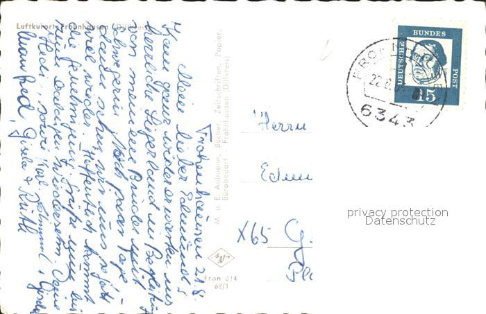 72477682 alte Postkarte Frohnhausen Dillkreis Durchblick vom Waldrand aus postalisch gelaufen Erhaltung siehe scans KatCode: 11110006532006