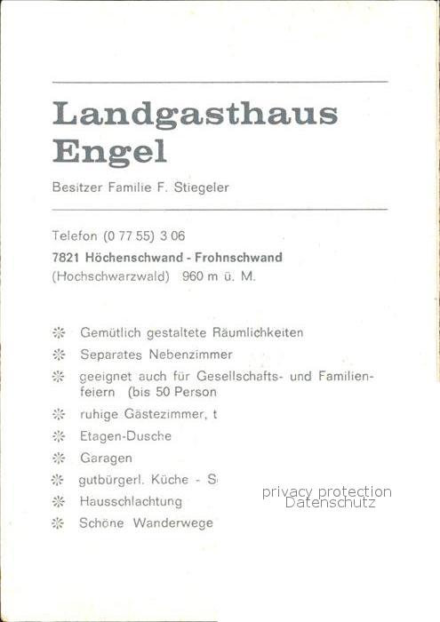 72038003 Frohnschwand Landgasthaus Engel postalisch nicht gelaufen Werbekarte (keine Postkarte) Erhaltung siehe scans KatCode: 11110008337051