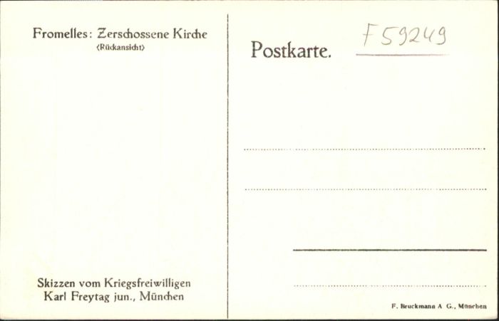 10834513 Fromelles Künstler Karl Freytag Zerschossene Kirche KatCode 11170059559257