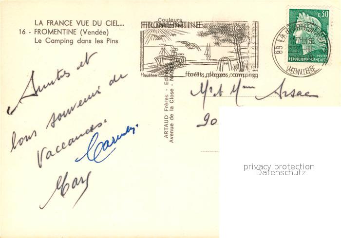 13590164 Fromentine Le Camping dans les Pins Vue aerienne postalisch gelaufen Erhaltung siehe scans [WerneD78] carte postale Wern Katcode 11170085385012