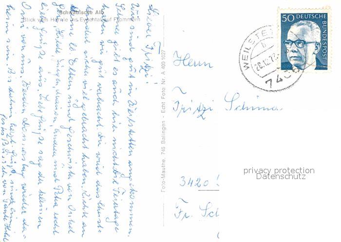 72686437 alte Postkarte Frommern Panorama Blick vom H?rnle ins Eyachtal postalisch gelaufen Erhaltung siehe scans [FriedD77] KatCode: 11110008417002