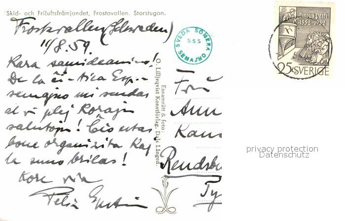 alte Postkarte Frostavallen Schweden Fraemjandet postalisch gelaufen Erhaltung siehe scans [AndreD76]