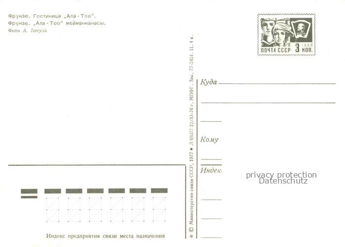 74042186 Frunze Bischkek Frunse Frunza Kirgisistan Hotel Ala Too postalisch nicht gelaufen Erhaltung siehe scans [IrynaD87] KatCode: 12310